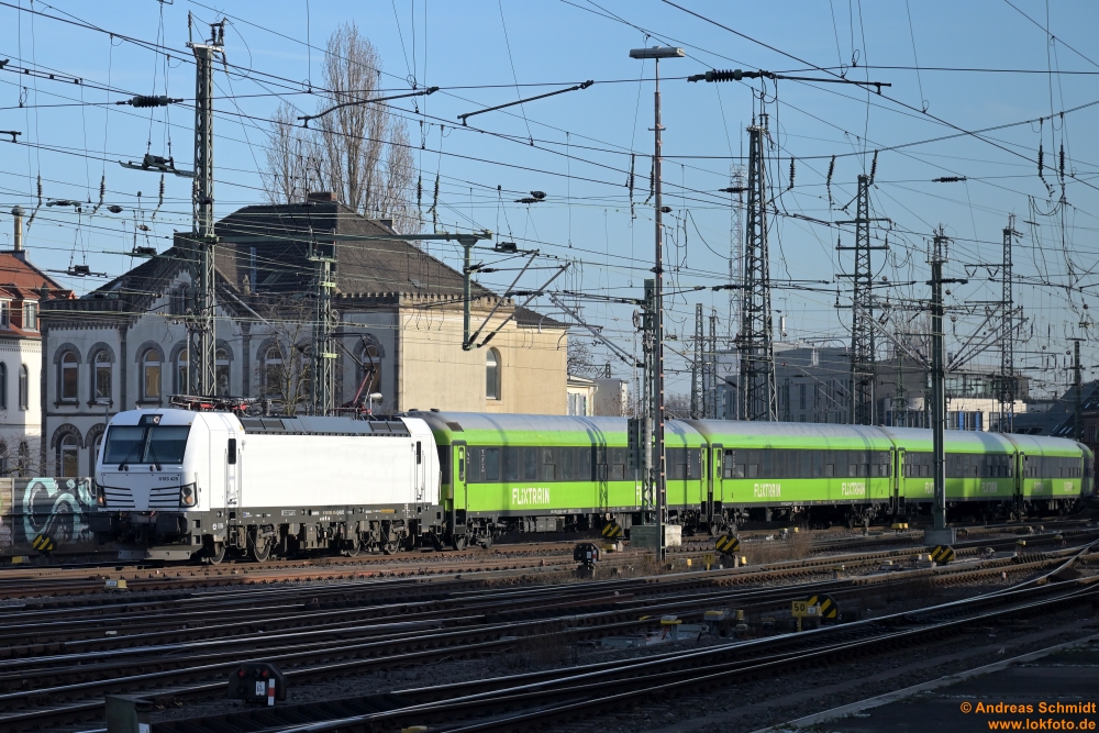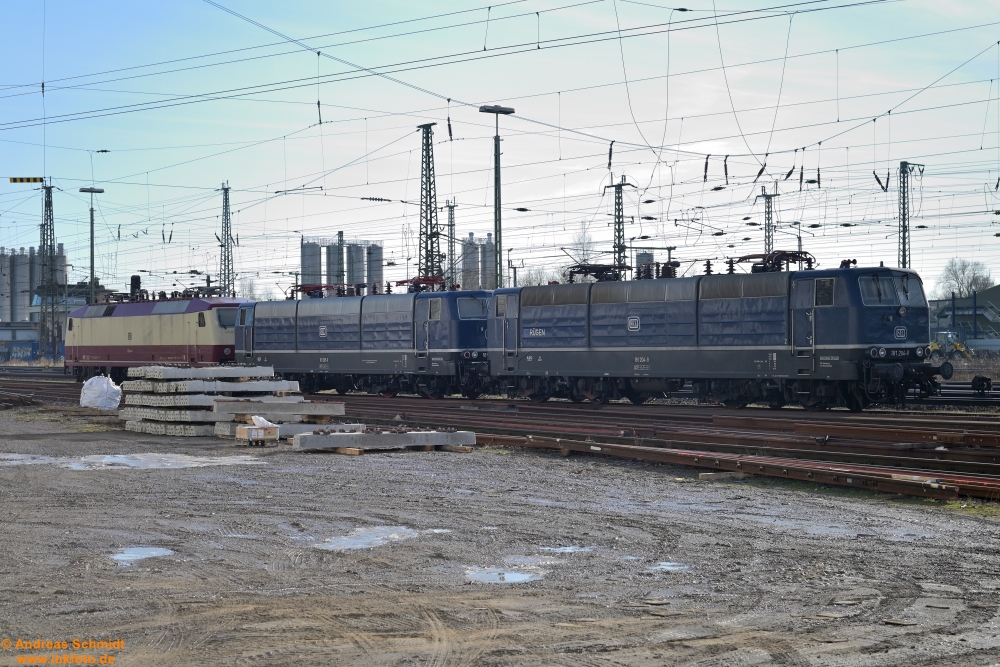 Wenn man sich mal Wolken wünscht, sind natürlich keine da und man steht da mit dem Gegenlicht: links 111 212 mit der TRI-n Wagen-Garnitur gen Hannover, rechts TRI 111 227 mit der nächsten Fahrt gen Bennemühlen (mit TRI-Dostos) - Mellendorf